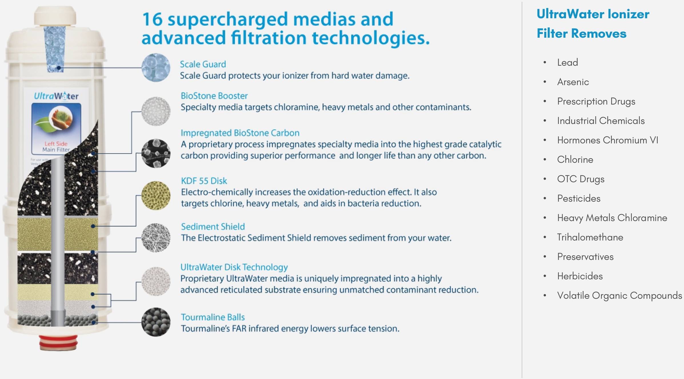UltraWater Filter: Our UltraWater filter is the ONLY water ionizer filter tested for 249 contaminants.